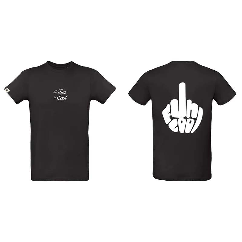 T-shirt classica con stampa “#fun #cool” a centro petto + maxi stampa del logo sulla schiena.
