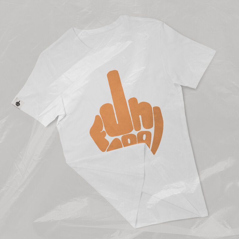 Maglietta bianca a maniche corte con stampa full frontale color arancione e stampa small retro scapola dx (100% Made in Italy)