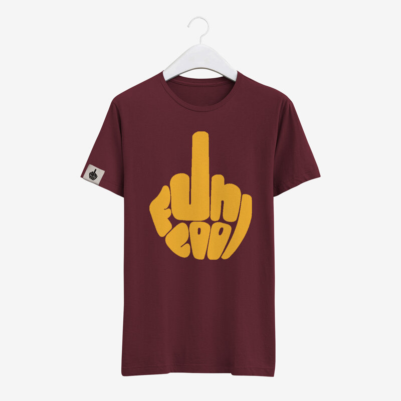 Maglietta amaranto a maniche corte con stampa full frontale colore gialla e stampa small retro scapola dx